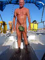 of the boat, dropped the sail and jumped into the water. My nude